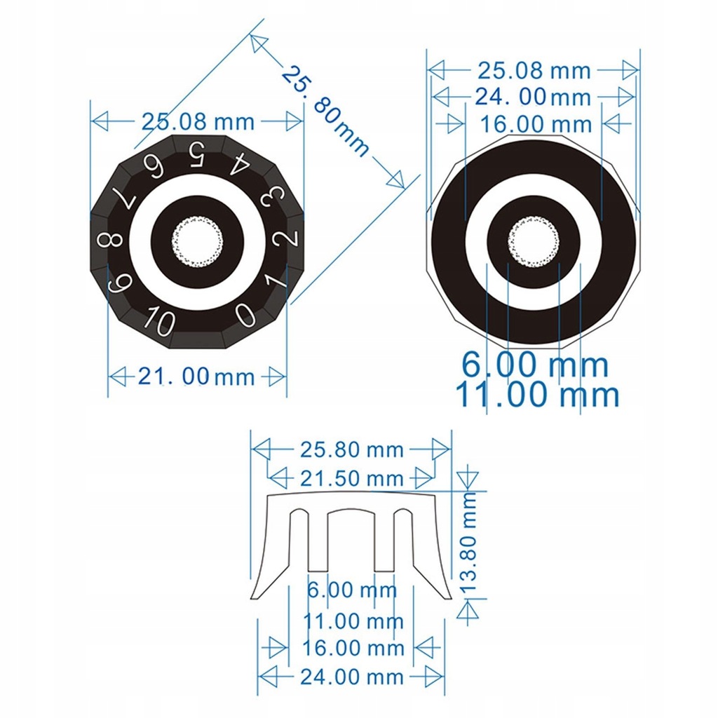 [Compatibility]: Universal bass knob suitable for a variety of electric guitars and basses, instruments.The diameter of the corresponding potentiometer installation part is 6mm.