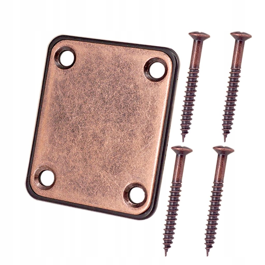 Electric Bass Guitar Neck Plate Neck Joint Plate with Screws - Copper Red