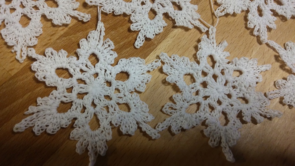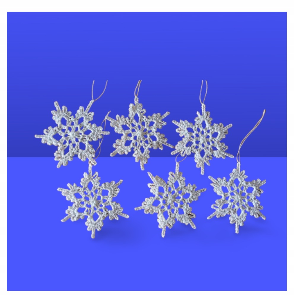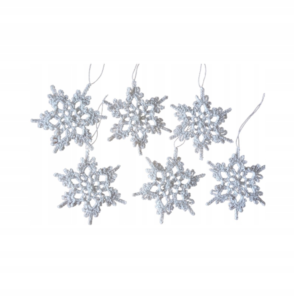 Oferuję Państwu gwiazdki robione ręcznie na szydełku z bawełnianych nici, krochmalone z zawieszką. Wysokość 7,50 cm, szerokość 7,50. Kolor biały. Komplet 6 sztuk. Polecam.