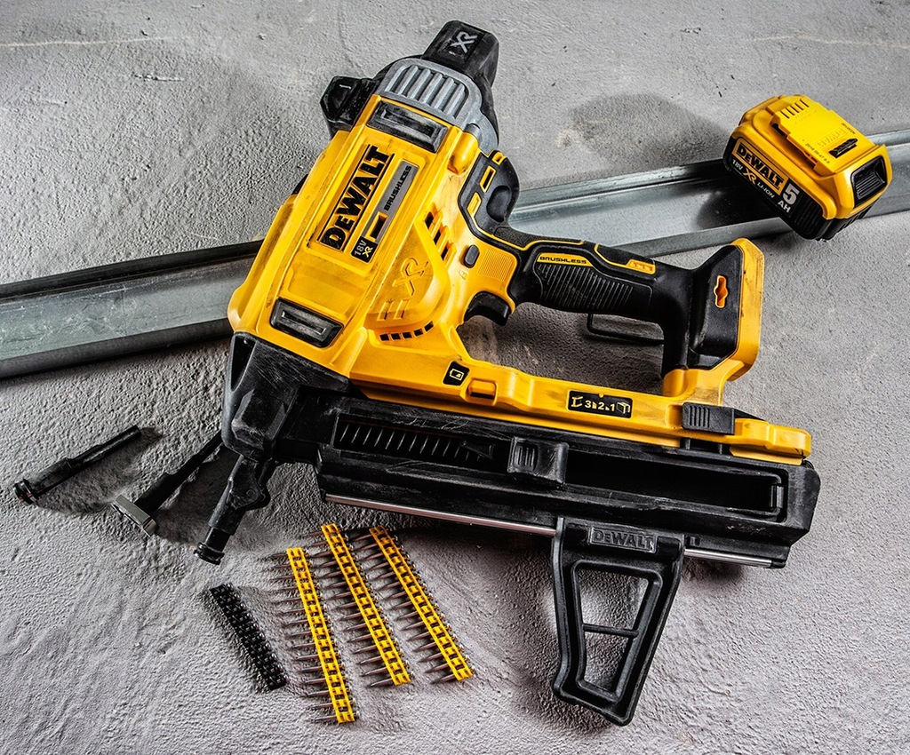 Gwoździarka do betonu DCN890 ma zakres gwoździ od 13 mm do 57 mm i może wbijać się zarówno w stal, jak i beton, W pełni kompatybilna z platformą Dewalt XR 18V, Tryb Single lub RapidCycle ™ do szybkiego, wielokrotnego wbijania gwoździ, Beznarzędziowa konstrukcja do szybkich regulacji i łatwego przeciągania i usuwania zacięć
