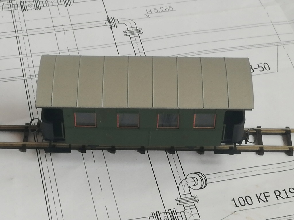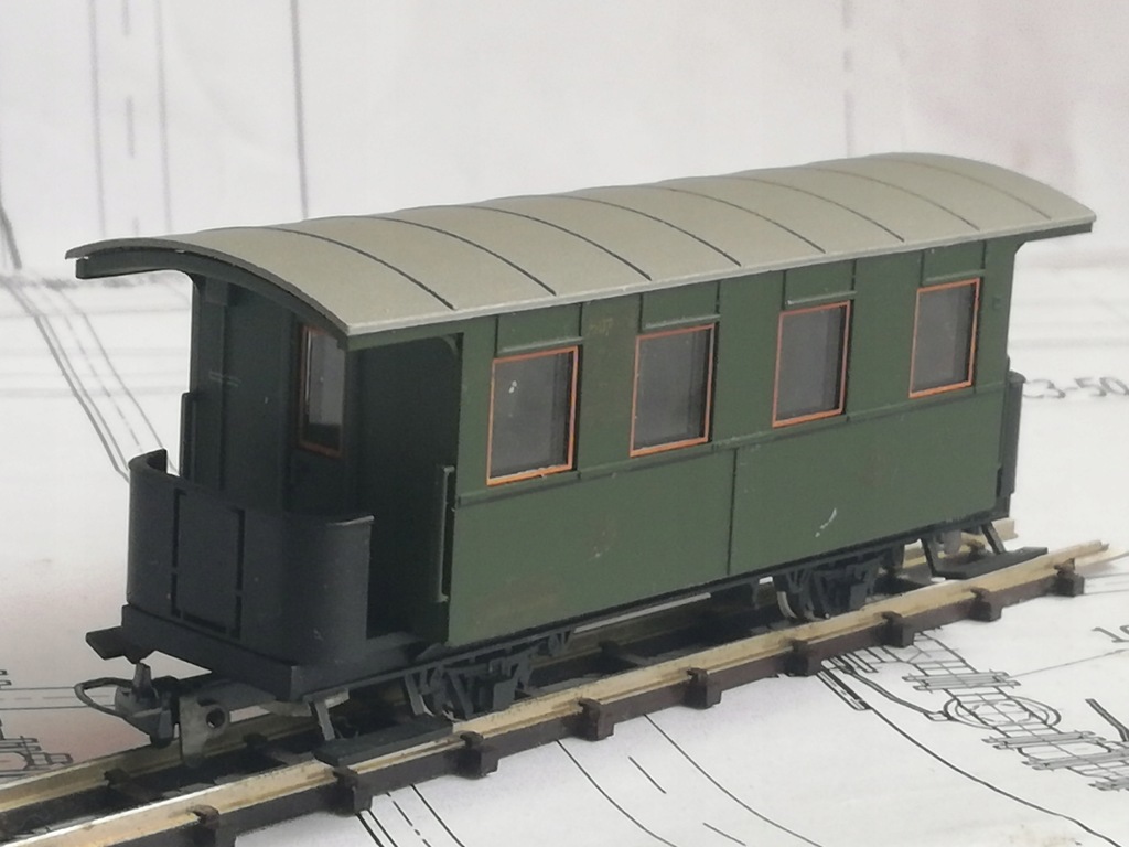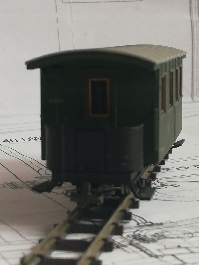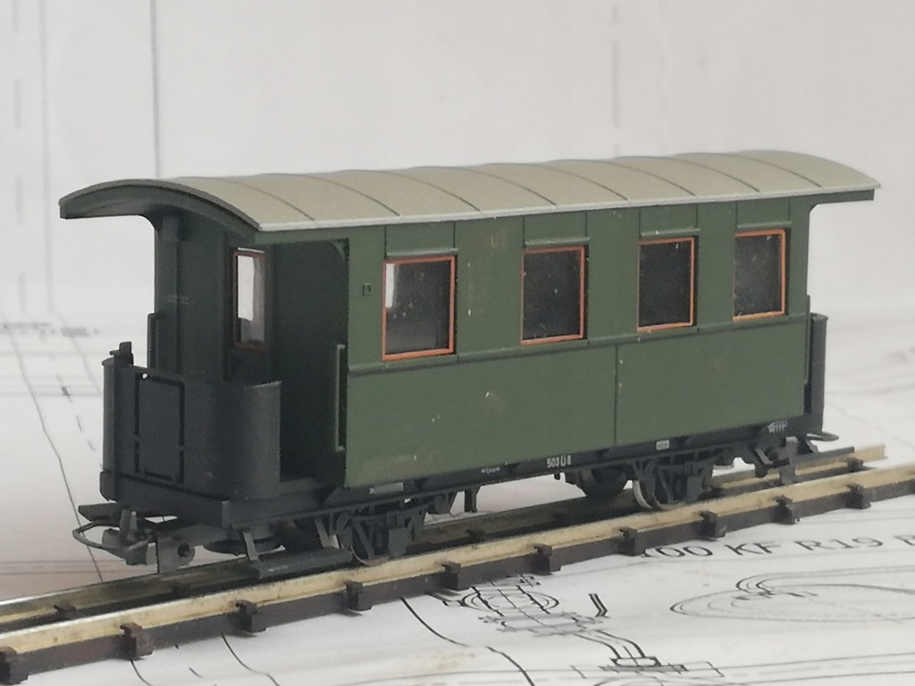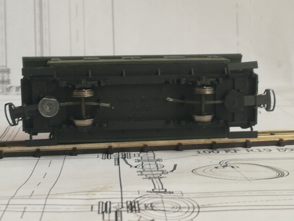 ...dwuosiowy wagon osobowy, skala H0e (1:87 / 9mm). Model firmy Liliput. Model używany, stan dobry. Bez wyposażenia wnętrza. Częściowo usunięte oznakowanie, są drobne ubytki lakiernicze. Sprzęgi maja dorobione "wąsy" sprężynujące ze struny gitarowej. Koła metalowe czyste. Opakowanie dorobione do bezpiecznego transportu