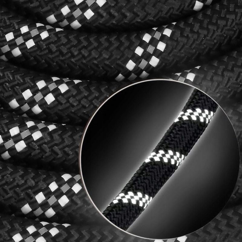 Bezpieczeństwo psa jest priorytetem, dlatego też smycz posiada odblaskowe nici, które znaczącą poprawiają widoczność pupila na drodze.
