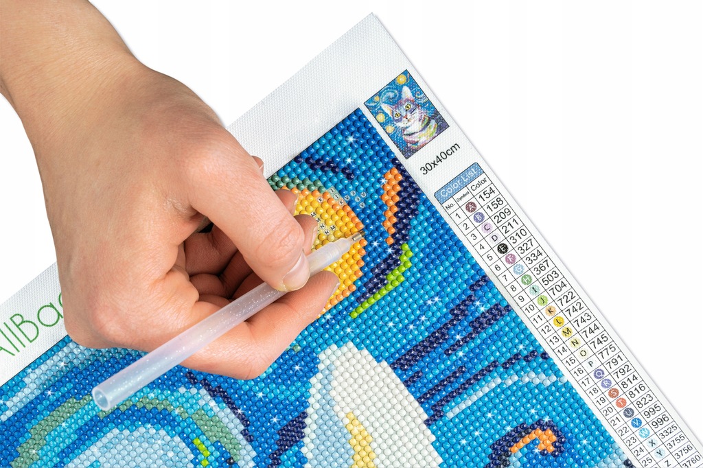 - aplikator, który umożliwia nakładanie diamencików na płótno