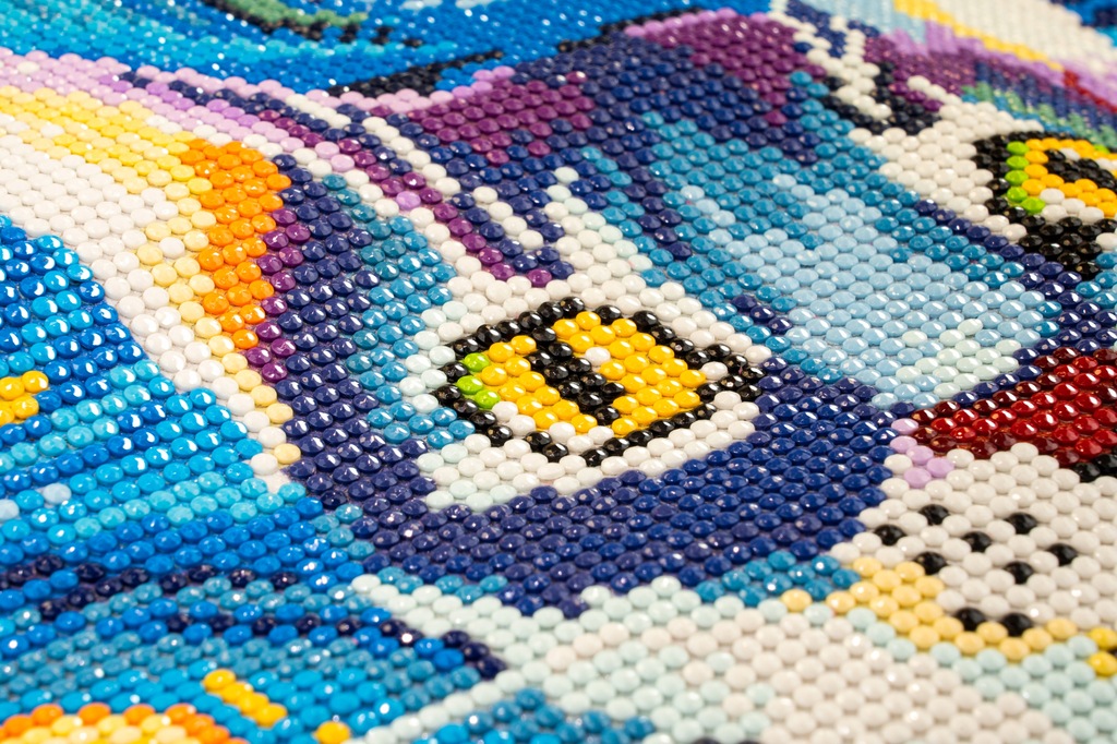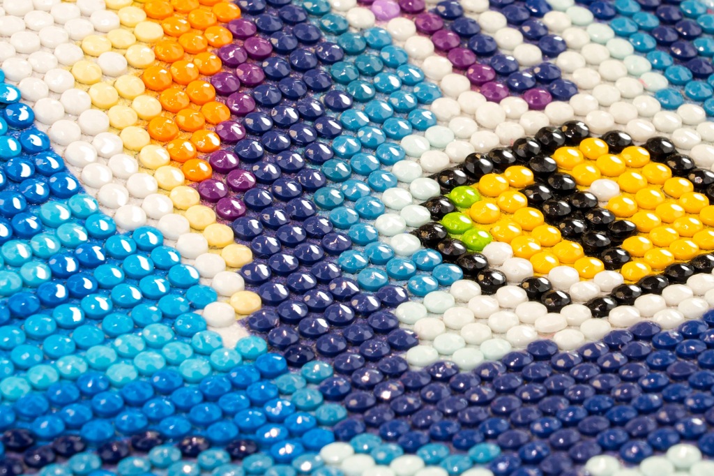 2. Całe płótno pokryte jest warstwą kleju, który umożliwi przyklejanie diamencików. Odklej folię ochronną tylko z tego fragmentu płótna, który akurat będziesz wypełniać diamencikami. Stopniowo odklejaj folię ochronną z kolejnych fragmentów. Dzięki temu reszta warstwy klejącej nie wyschnie.