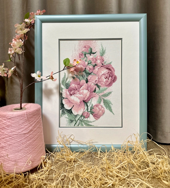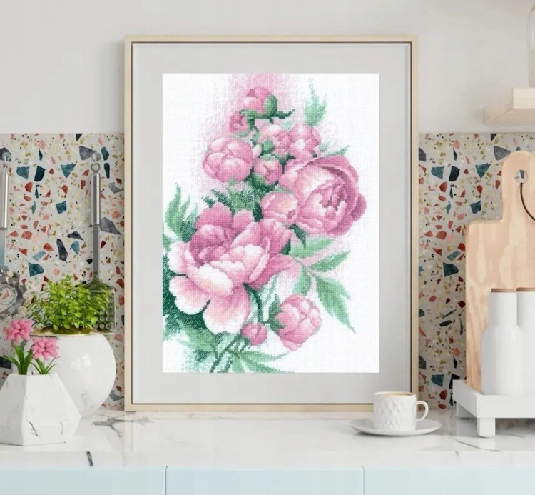 Haft krzyżykowy - Zestaw do haftu z muliną - RIOLIS - Bujne piwonie