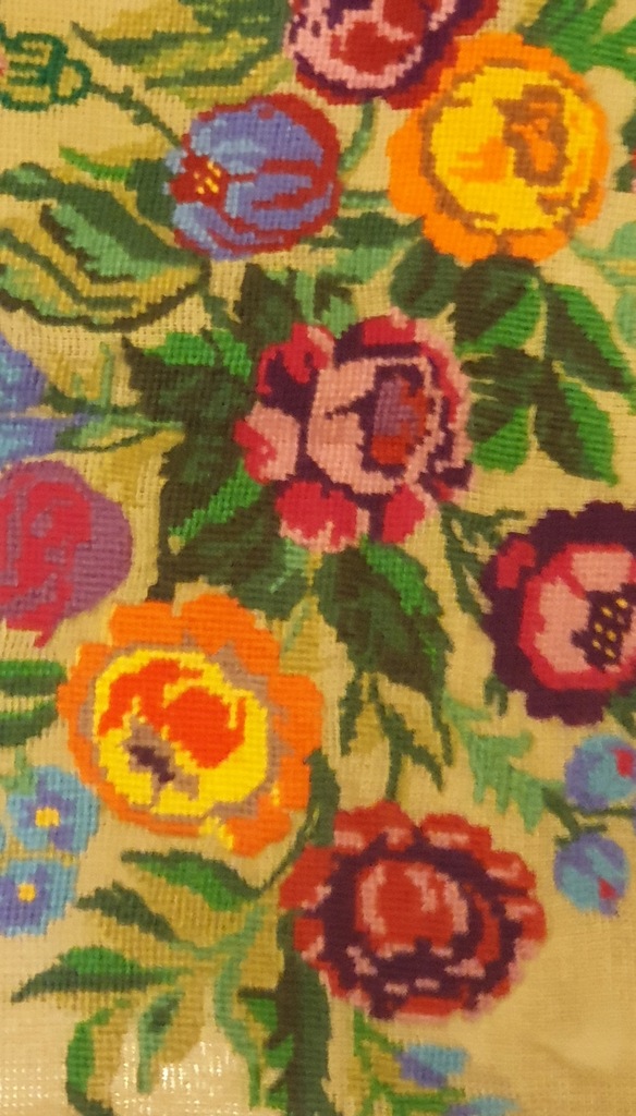 HAFTOWANY GOBELIN / OBRAZ TKANINA DO OPRAWIENIA -KWIATY.POLECAM WYMIARY 75X48CM