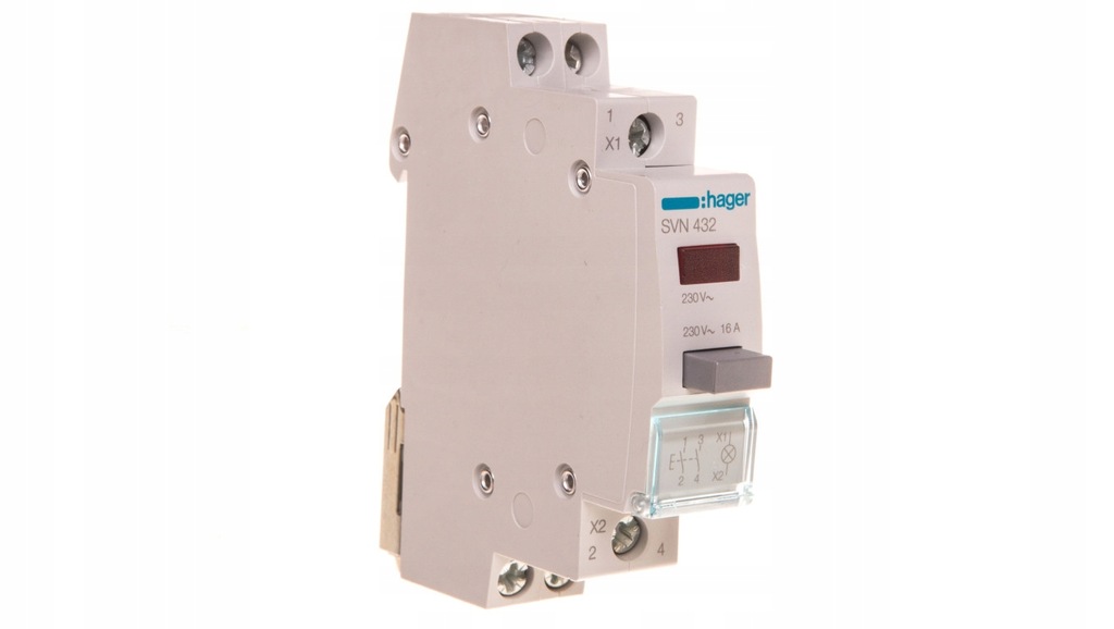 - nazwa przedmiotu: Hager SVN432 16a 250 V 2na, czerwony przycisk z pilotem świetlnym