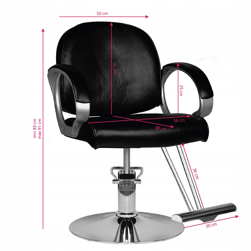 Nowoczesny fotel fryzjerski marki HAIR SYSTEM. Elagancki i bardzo wygodny. Solidna, chromowana podstawa gwarantuje utrzymanie stabilności siedziska. Obicie wykonane z wysokiej jakości czarnej ekoskóry. Fotel posiada regulację góra-dół. Wymiar opakowania: 60x64x62 ,