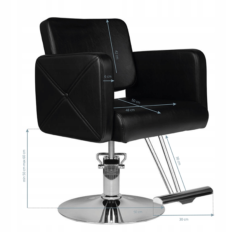Nowoczesny fotel fryzjerski marki HAIR SYSTEM. Elagancki i bardzo wygodny. Solidna, chromowana podstawa gwarantuje utrzymanie stabilności siedziska. Obicie wykonane z wysokiej jakości czarnej ekoskóry. Fotel posiada regulację góra-dół. Wymiary opakowania 65x63x62 ,
