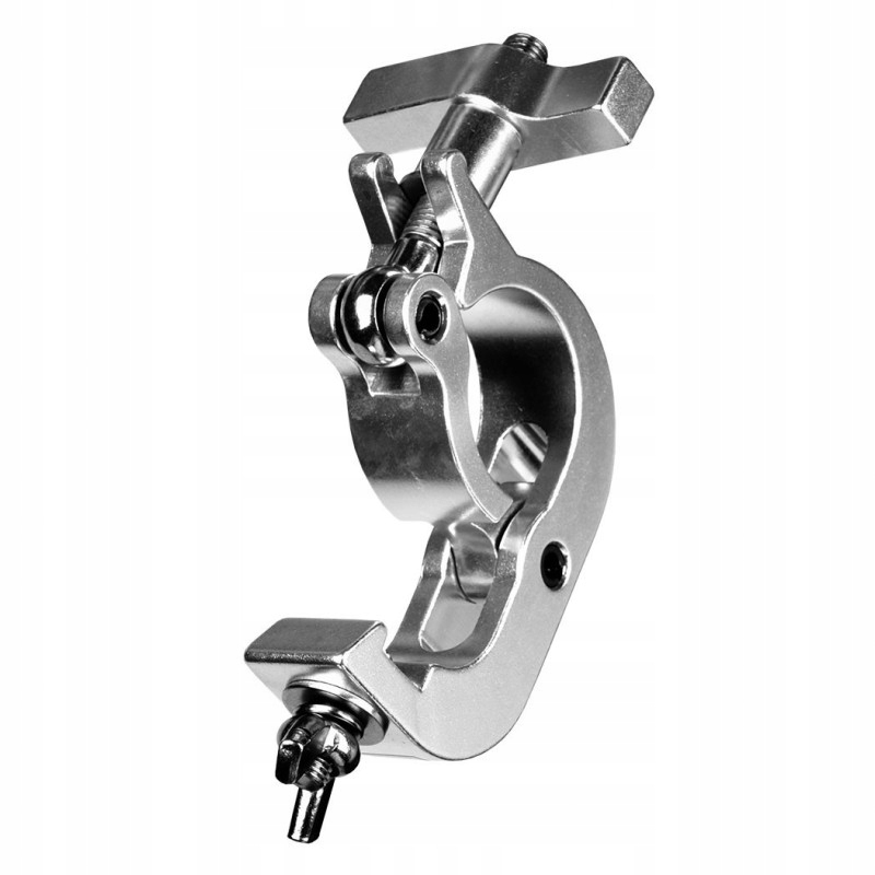 STAND4ME H-528 to profesjonalny uchwyt do kratownicy scenicznej o przekroju rury od 48 do 51 mm, umożliwiający szybkie instalowanie na niej sprzętu: oświetlenia scenicznego, wytwornic dymu, wentylatorów, wyrzutni konfetti, sztucznych ogni i różnego typu urządzeń estradowych. Zaczep w całości wykonany został z lekkiego i bardzo wytrzymałego aluminium. Znosi obciążenie do 250 kg, dzięki czemu idealnie sprawdza się jako hak do ruchomych głowic oraz innego typu cięższych urządzeń. Dzięki specjalnej, wieszakowej konstrukcji, urządzenia nie muszą być podtrzymywane w trakcie ich mocowania. Wystarczy tylko zaczepić hak z przymocowanym do niego sprzętem o rurę nośną i całość od razu wisi samodzielnie. Urządzenie można puścić, a mając do dyspozycji wolne ręce, skorygować odpowiednio jego pozycję. Dzięki takiemu rozwiązaniu montaż sprzętu na kratownicy odbywa się w sposób wygodny i znacznie szybszy, niż w przypadku innego typu uchwytów. To doskonały hak sceniczny renomowanej marki Stand4Me.