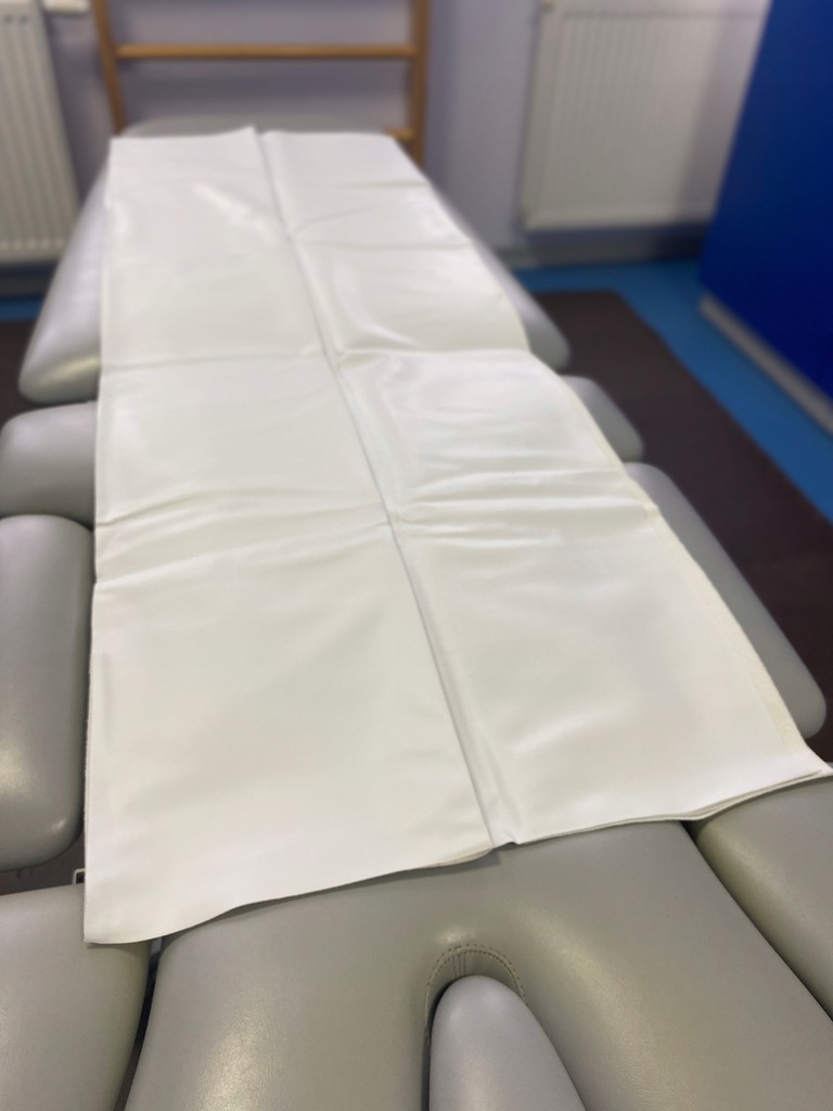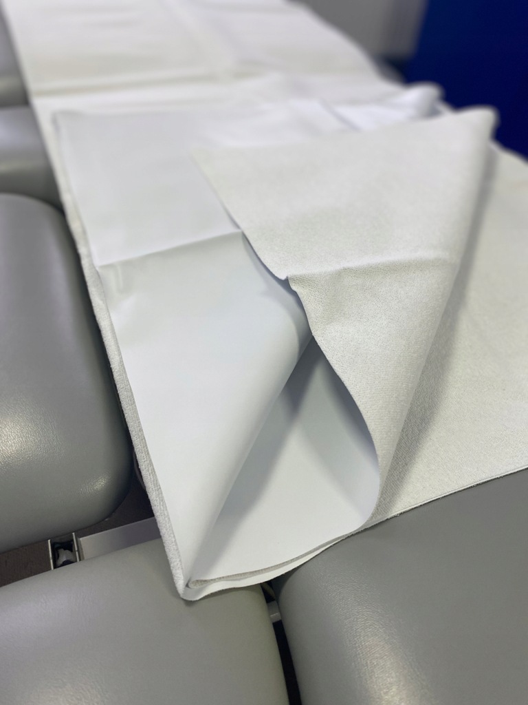 Warstwa wierzchnia jest wykonana z miękkiej bawełnianej tkaniny FROTTE + PVC, przyjemnej w dotyku i niepodrażniającej skóry, warstwa spodnia natomiast to wodoodporny materiał PCV.