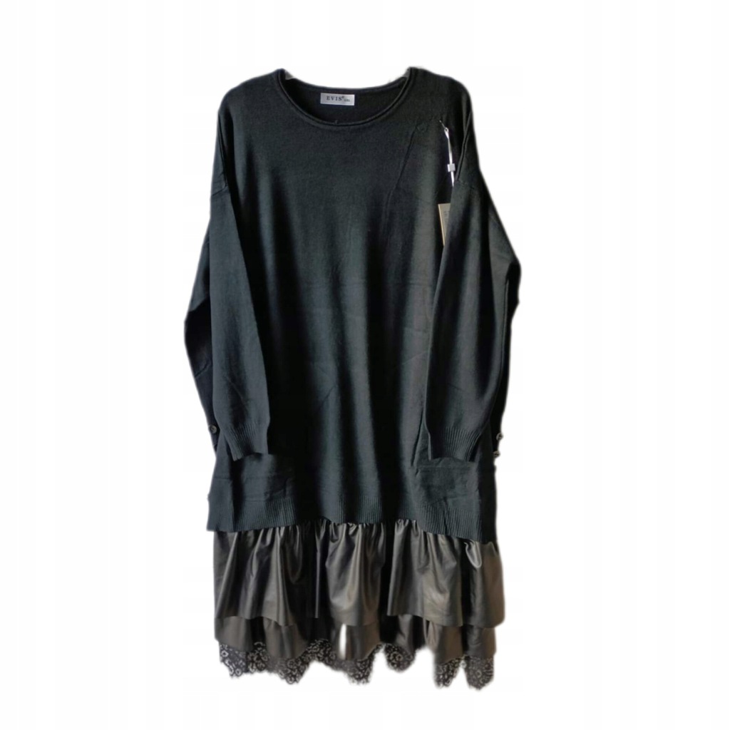 Halka z koronką i eko-skórą plus size