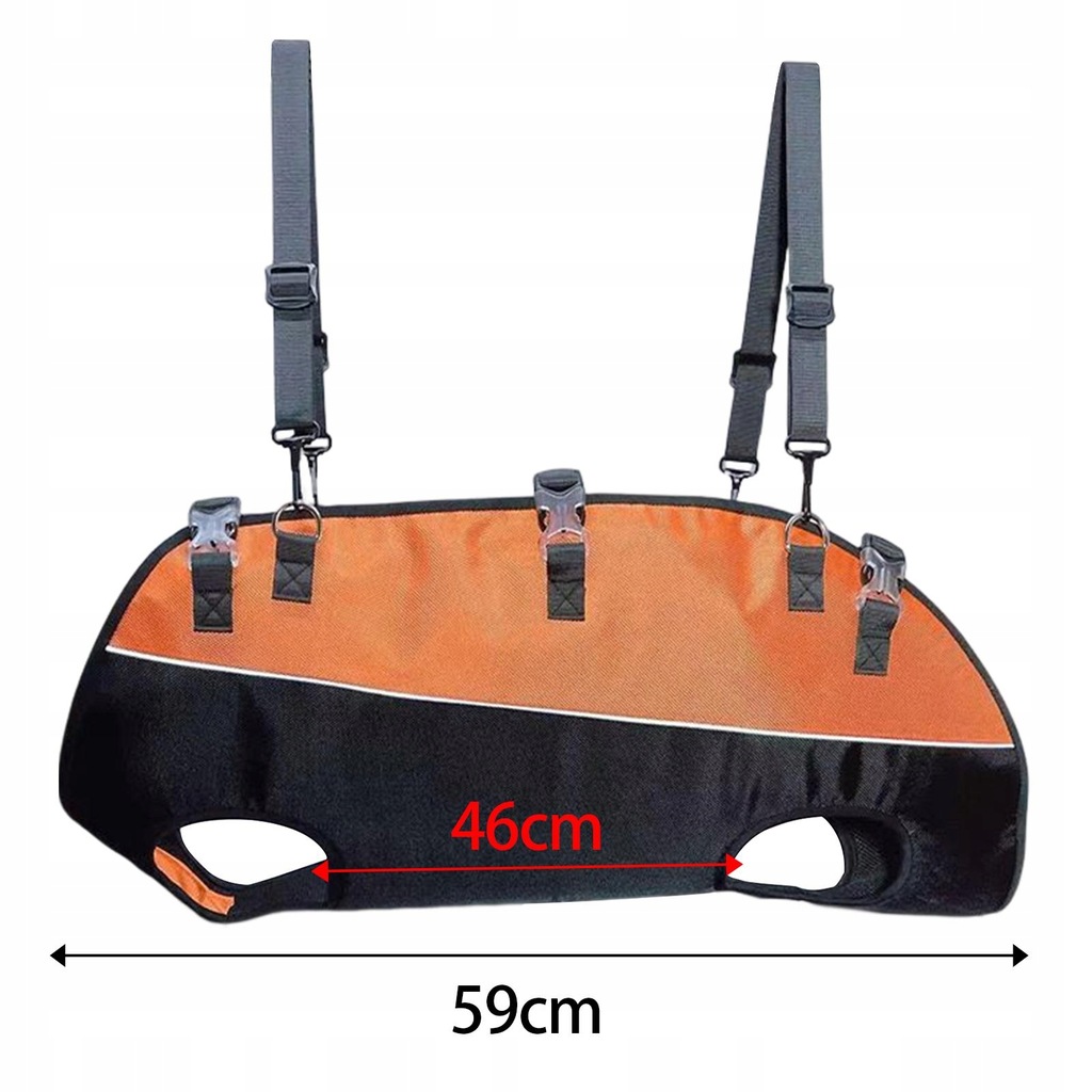 Instrukcja użytkowania: Po prostu umieść nogi psa w otworach, owiń je wokół nich i użyj haczyków, aby je zawiesić.