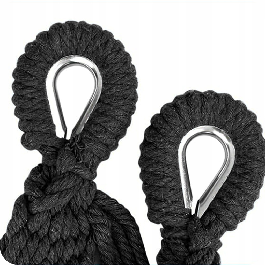 Nasz hamak można dodatkowo powiesić między drzewami bez konieczności stelaża! W zestawie dodatkowo są wmontowane metalowe łezki oraz linki mocujące.