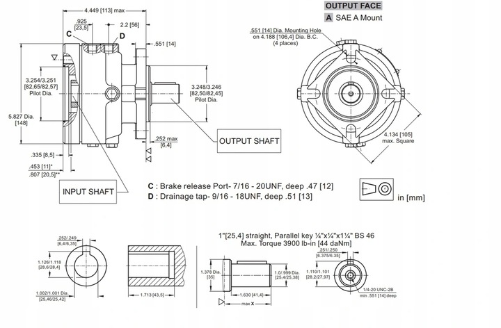 - Może być stosowany razem z silnikiem hydraulicznym serii BMP, BMR, BMS