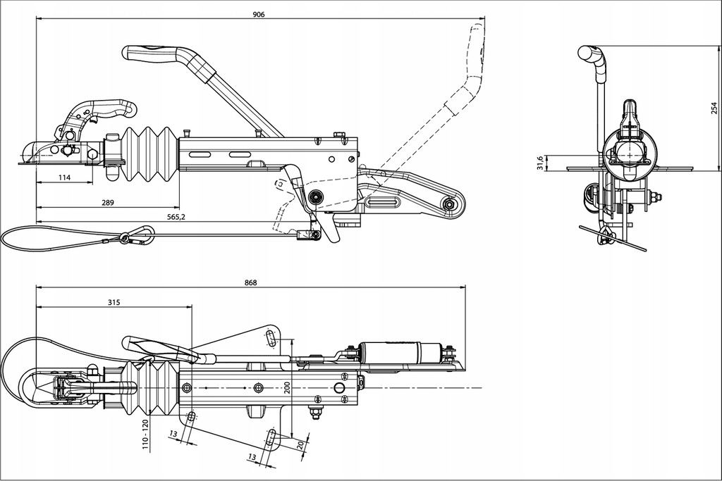 - ✅ Uniwersalne zastosowanie — idealne do przyczep i lawet hamowanych z dyszlem typu „V” o masie 750–1400 kg.