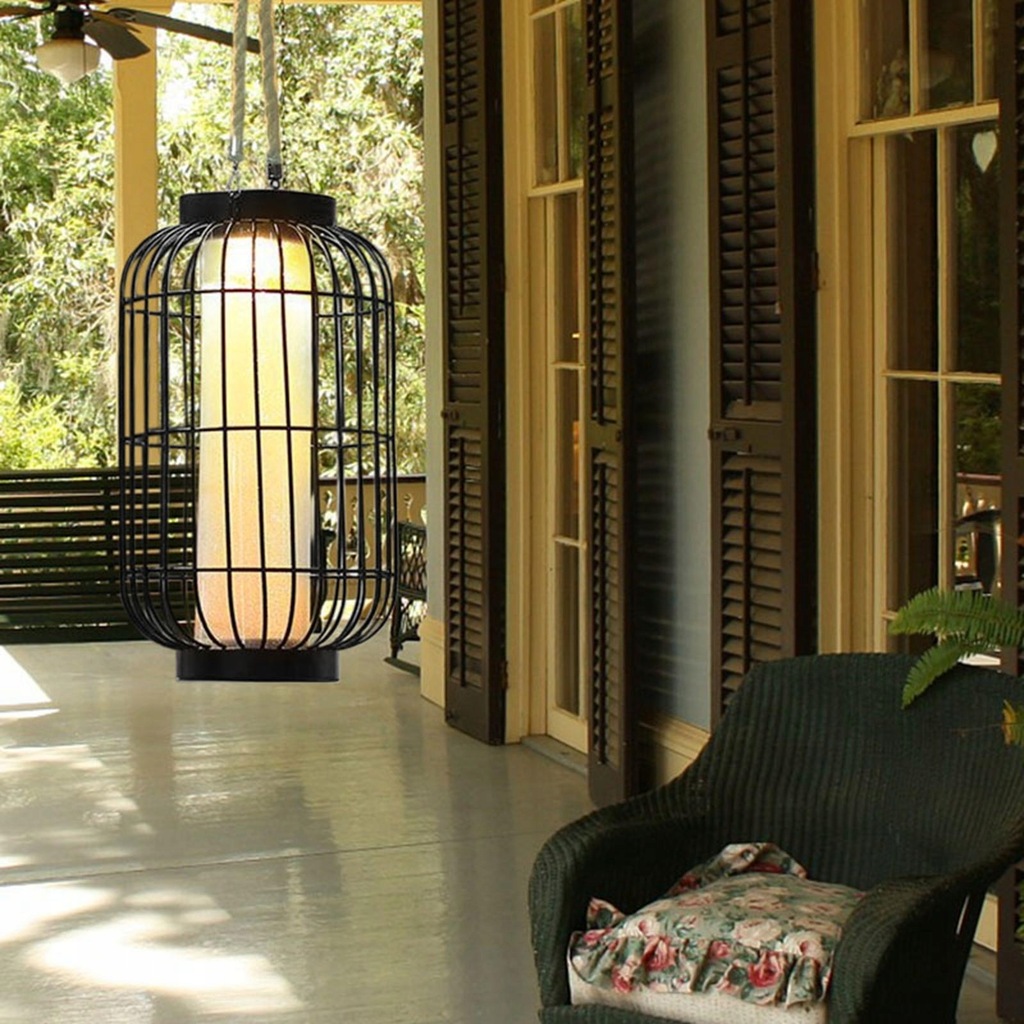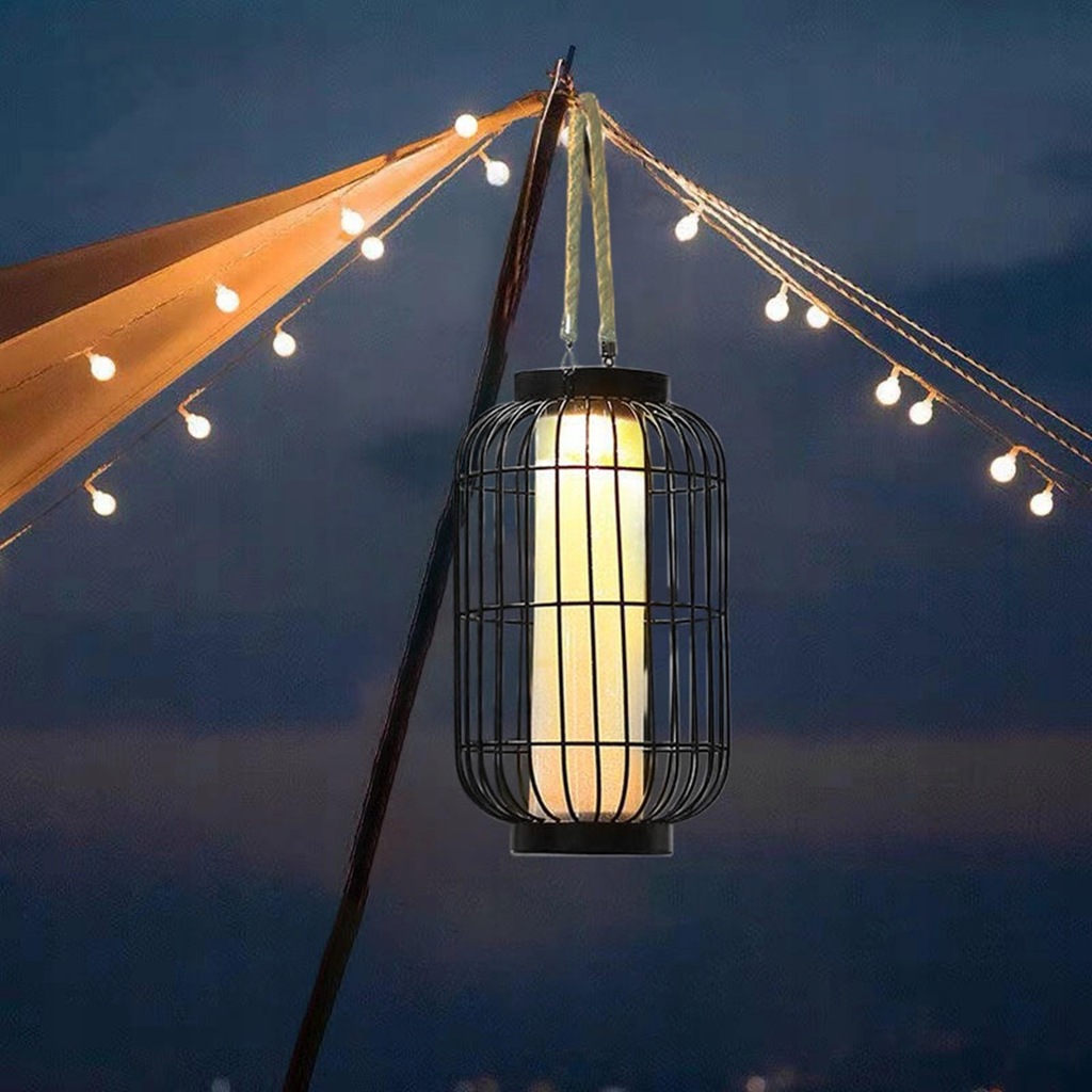 Hanging Solar Lantern with Handle Patio Lamp for Lawn Pathway Backyard Black