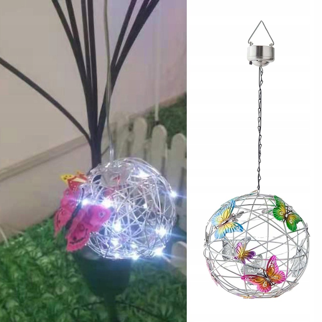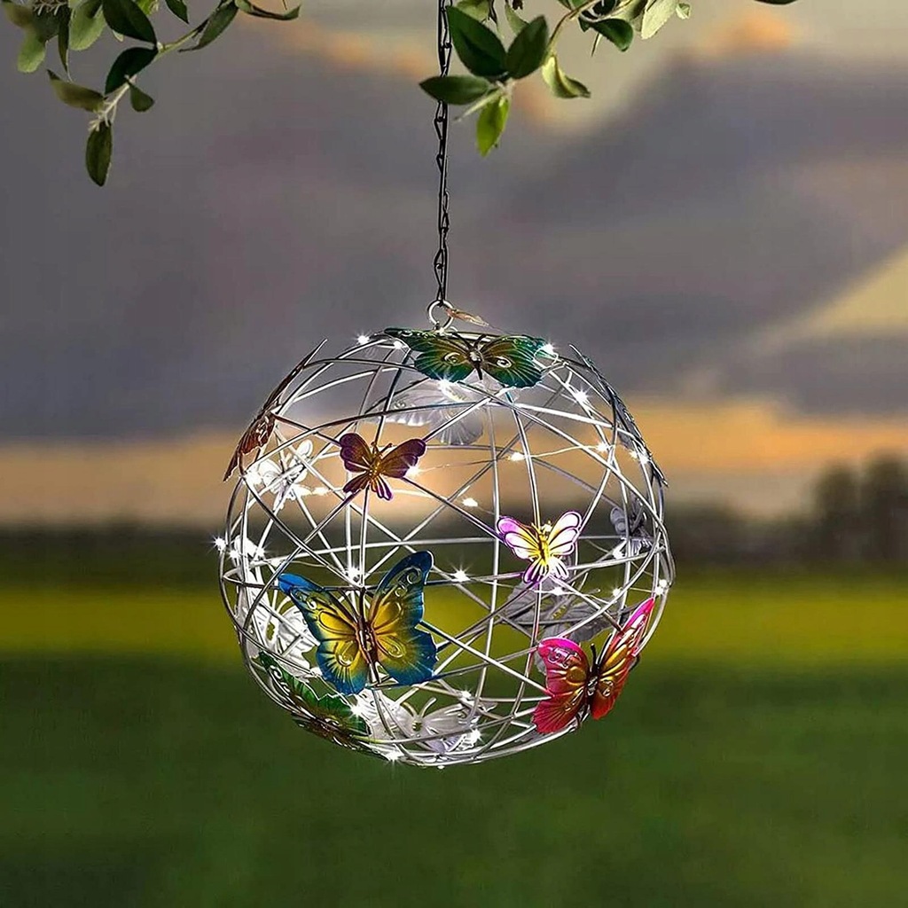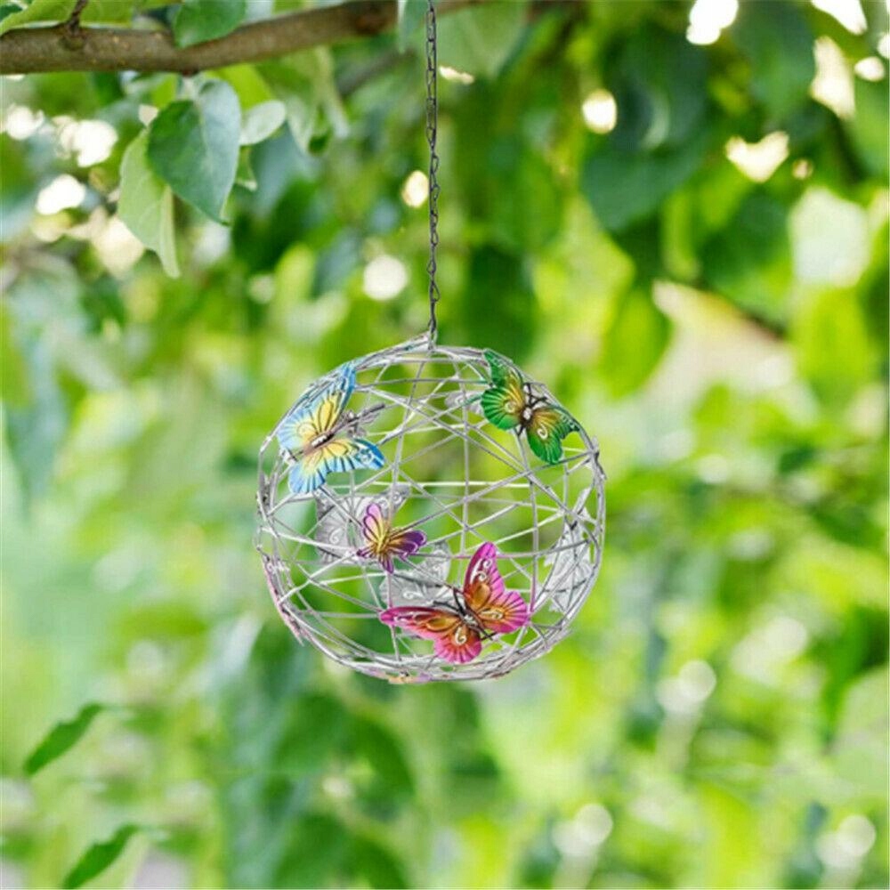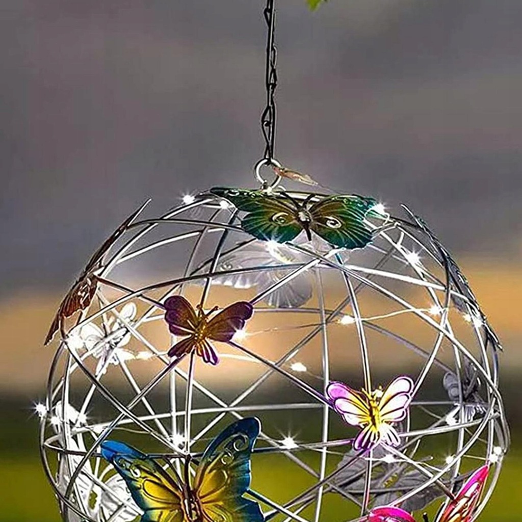 This beautiful solar powered LED light in Mesh Orb shape with colorful butterflies decoration very decorative