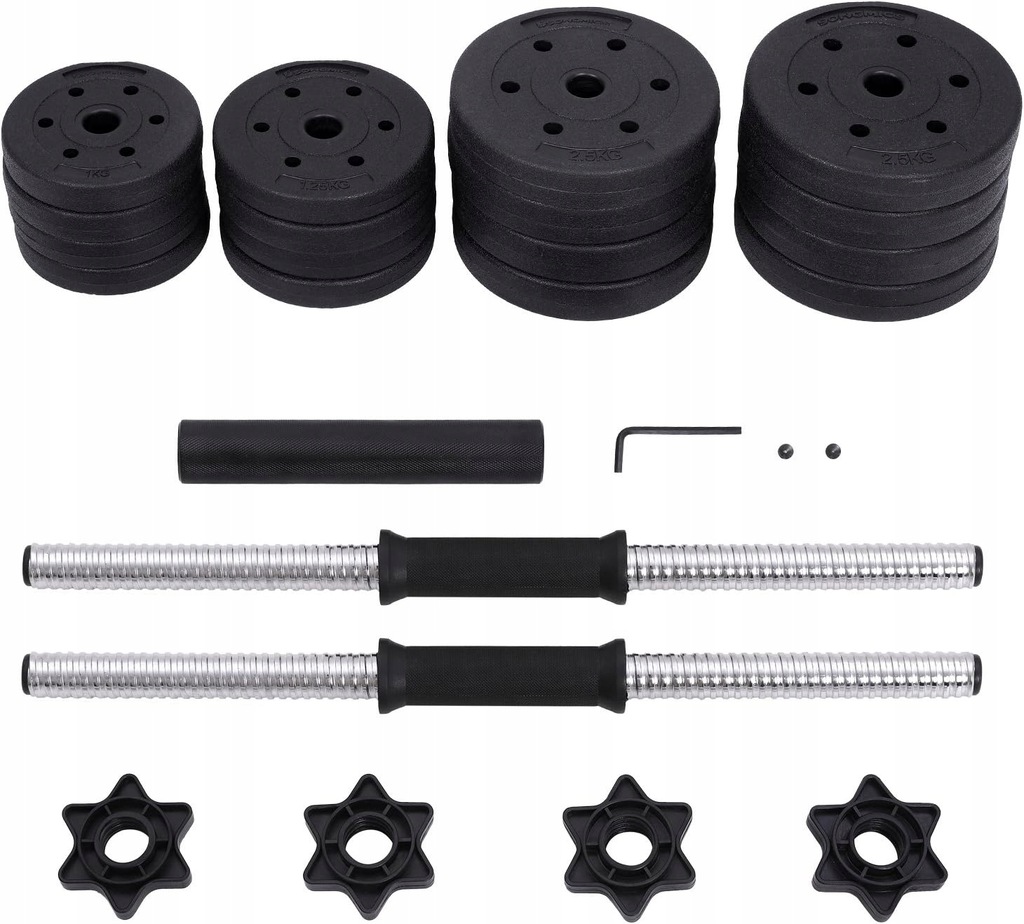 ♦️ Oszczędzasz miejsce — hantle i sztanga w jednym zestawie