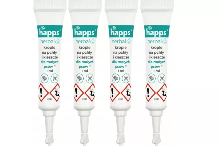 HAPPS HERBAL KROPLE NA PCHŁY I KLESZCZE DLA PSÓW MAŁYCH 5-10 KG, 4 X 1 ML