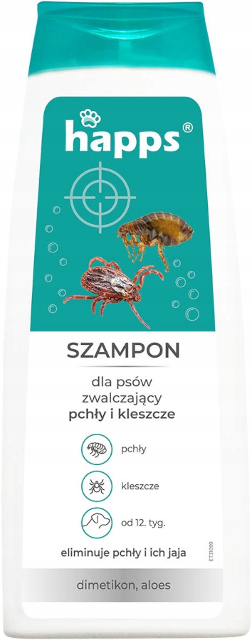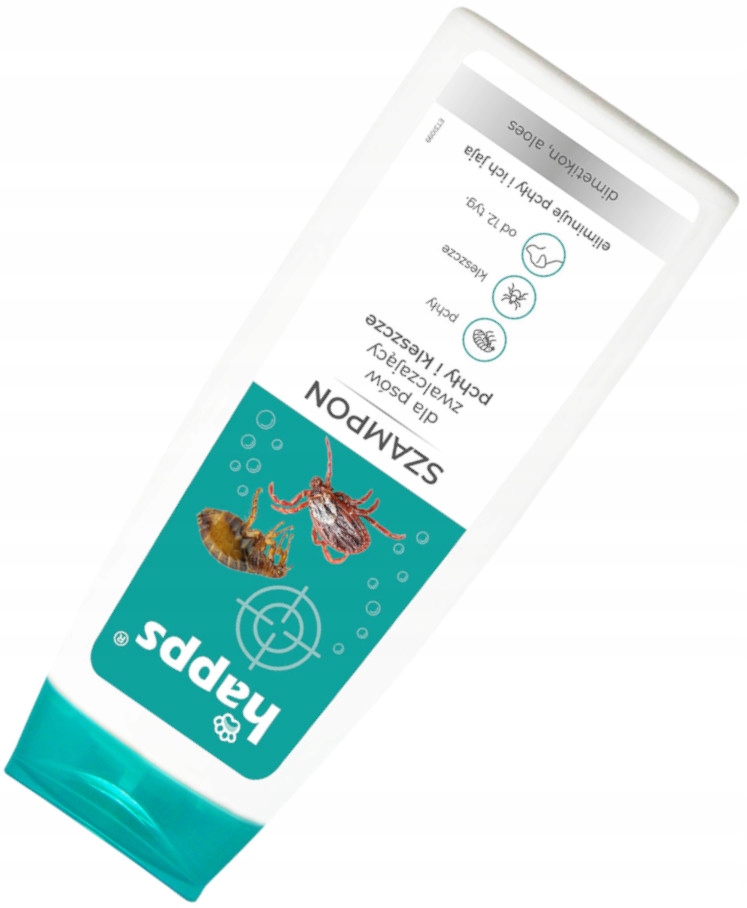 HAPPS Zaawansowany Szampon dla Psów do Zwalczania Pcheł i Kleszczy z Dimetikonem