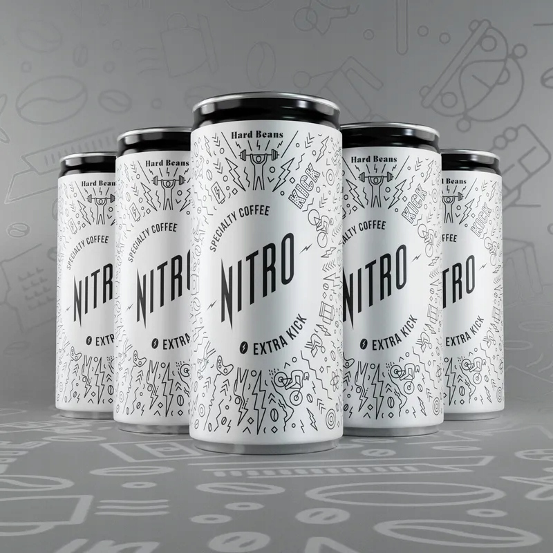 Hard Beans Nitro Extra Kick to kremowy napój na bazie kawy, który powstał dzięki ekstrakcji zimną wodą przy zastosowaniu naszej opatentowanej technologii Hardtank i infuzji ciekłym azotem. Powstał z najwyższej jakości ziaren pozyskiwanych w modelu direct trade od producentów, z którymi łączą nas wieloletnie relacje i bliska współpraca.