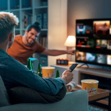 Po zaplanowaniu nagrywania możesz oglądać, gdziekolwiek chcesz w domu. Aby oglądać w salonie, po prostu użyj dekodera strumieniowego lub kompatybilnego telewizora Smart TV, aby oglądać na dużym ekranie.