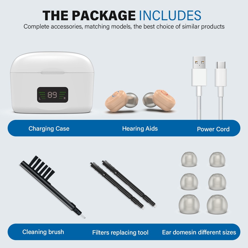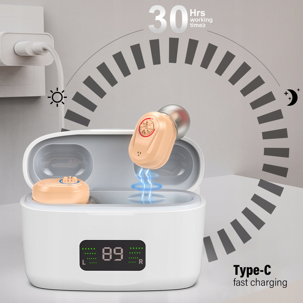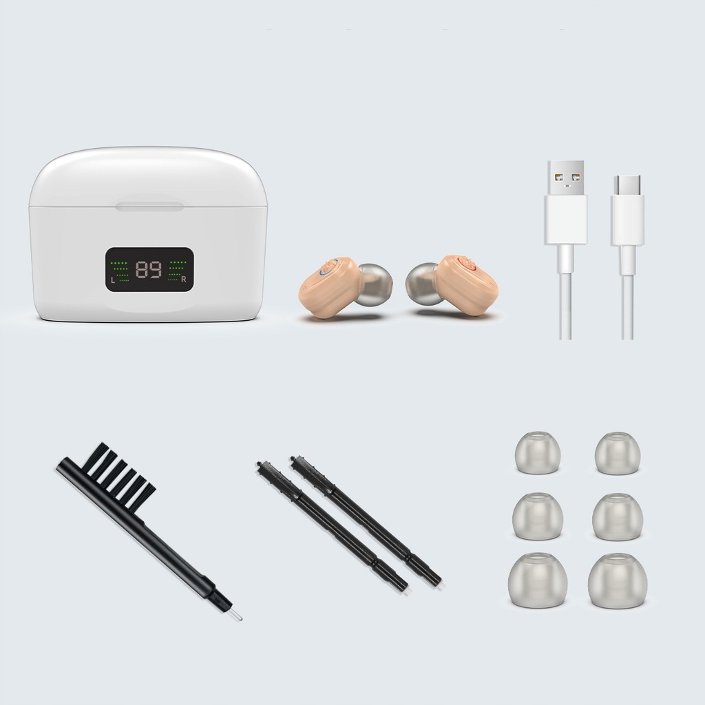 Aparat słuchowy wyposażony jest w praktyczną komorę ładującą, która nie tylko chroni produkt, ale także pełni funkcję ładowarki. Etui na słuchawki posiada wbudowaną baterię, dzięki czemu słuchawki można ładować w dowolnym miejscu, co jest doskonałym rozwiązaniem dla osób spędzających dłuższy czas na świeżym powietrzu. Etui jest magnetyczne i przyciąga słuchawki, zapobiegając ich wypadaniu po umieszczeniu w ładowarce.