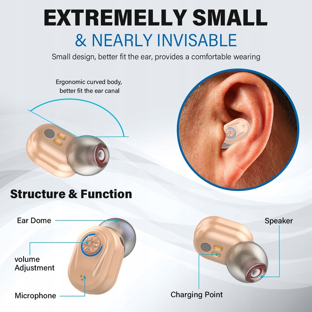 Aparat słuchowy z funkcją redukcji szumów Mały aparat słuchowy Lewe i prawe ucho