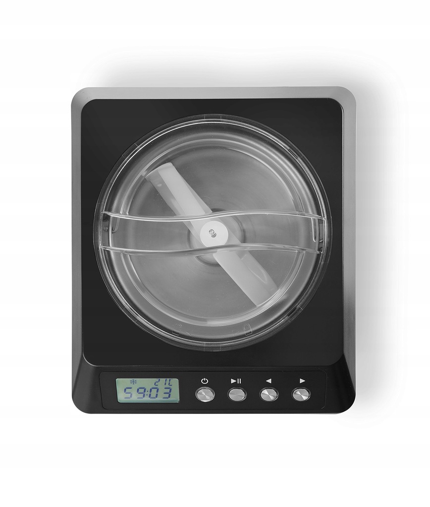 Pojemność 2 litrów pozwala na przygotowanie dostatecznej ilości lodów, a zakres temperatury od -10°C do -35°C gwarantuje zadowalające rezultaty. Maszyna działa w czasie do 90 minut, co sprawia, że jest szybka i efektywna w użytkowaniu.