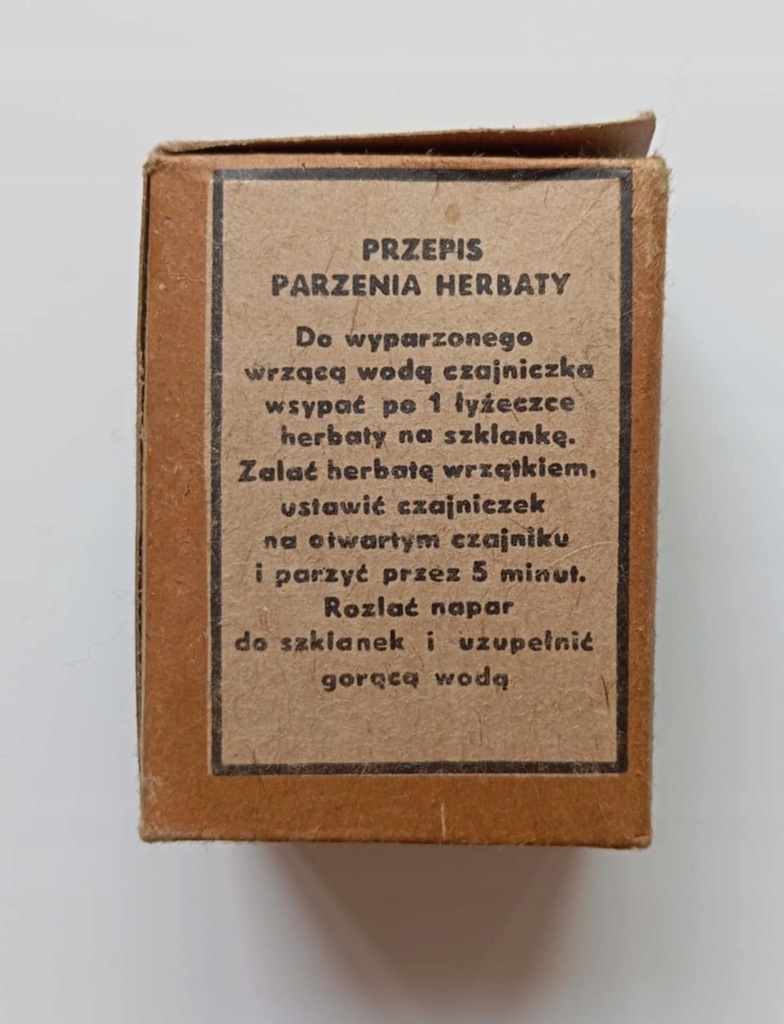 W czasach PRL, opakowanie herbaty często było wielokrotnie wykorzystywane – np. do przechowywania przypraw, igieł, a nawet biżuterii. Tektura była trwała i estetyczna jak na standardy ówczesne.