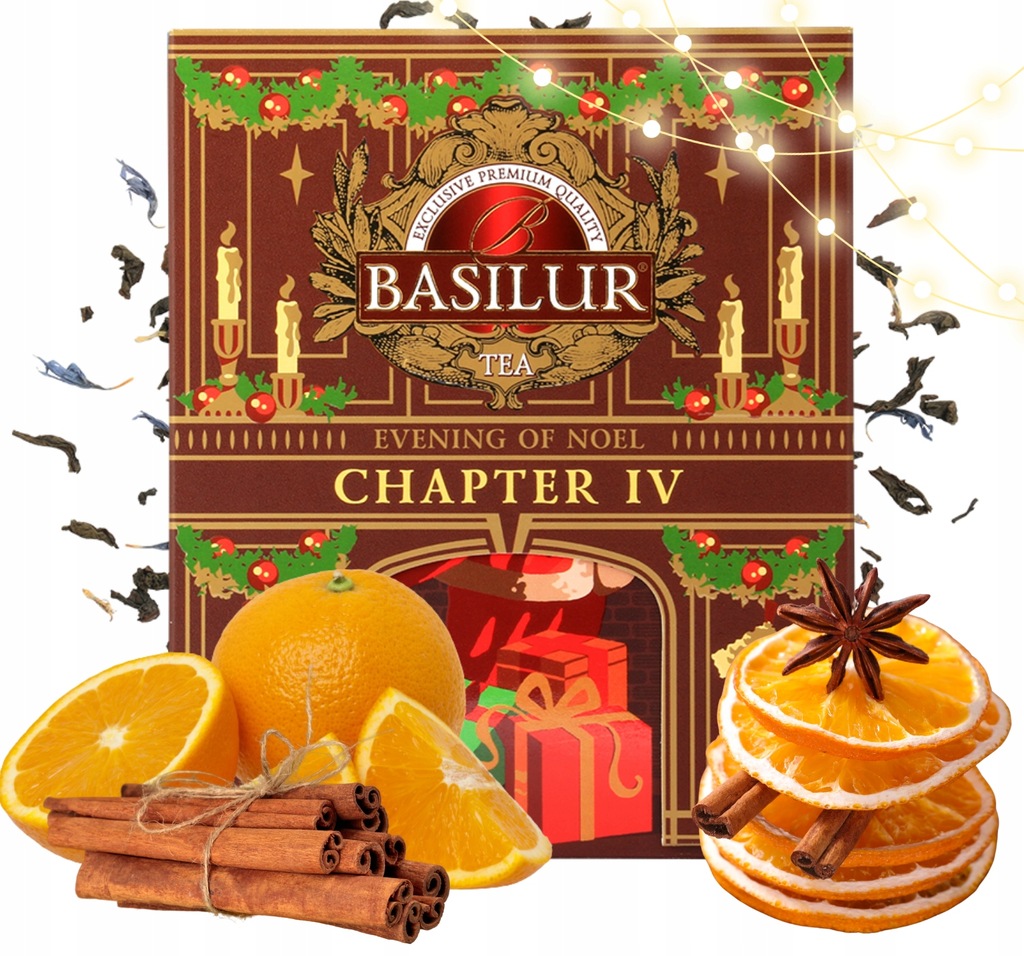 Już po pierwszym łyku Basilur Evening of Noel Chapter IV poczujesz w pełni magię świąt Bożego Narodzenia! Ta herbata to prawdziwa esencja zimowych smaków i zapachów. Mocny, bogaty charakter czarnej herbaty cejlońskiej w wyśmienity sposób przeplata się ze słodkawo-korzennymi nutami oraz kwaskowatym zwieńczeniem. Po zaparzeniu kompozycji wyczuwalna jest intensywna mieszanka aromatu przypraw i cytrusów.