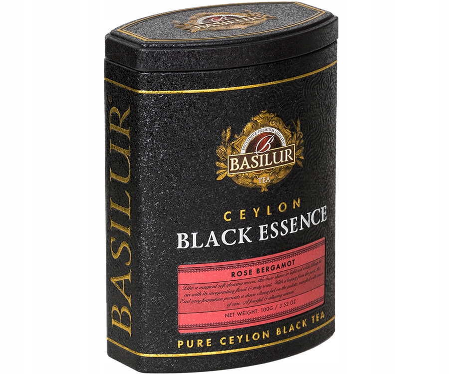 Herbaty z kolekcji Black Essence stanowią doskonały prezent dla miłośników klasyków z aromatycznym twistem! Liście czarnej herbaty zostały zamknięte w zdobionej metalowej puszce. Barwy czerni, złota i różu nadają całości eleganckiego i wytwornego wyglądu.
