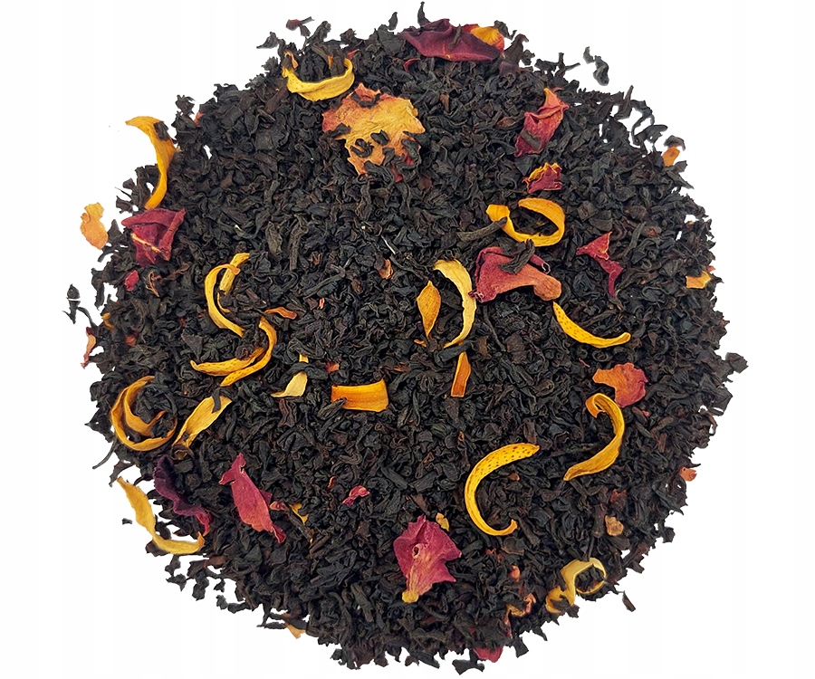 Czarna herbata cejlońska z dodatkiem kwiatów róży i pomarańczy oraz aromatu bergamotki i róży.