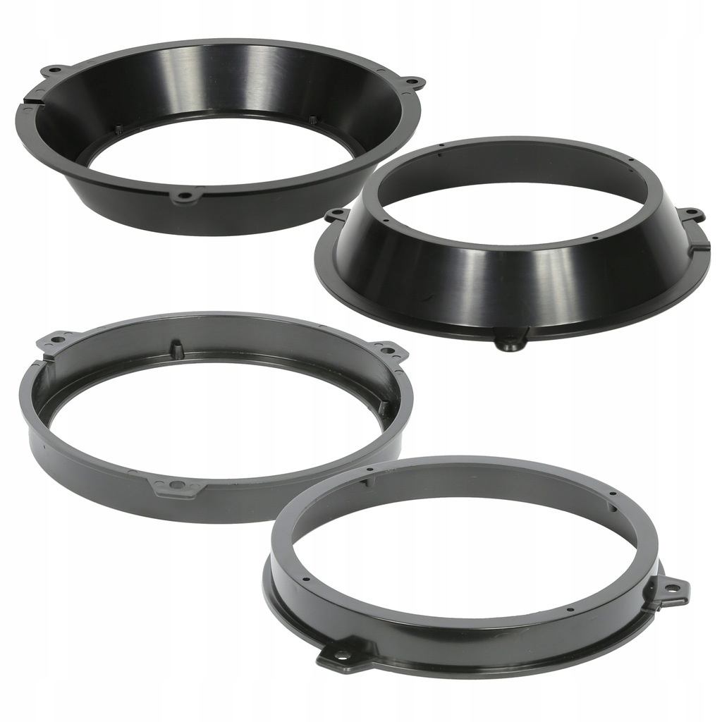 Do kompletu głośników dokładamy specjalne dystanse-redukcje-adaptery głośnikowe. Mają one na celu umożliwić montaż standardowych okrągłych głośników w miejsce głośników fabrycznych o niestandardowym kształcie i wymiarze.