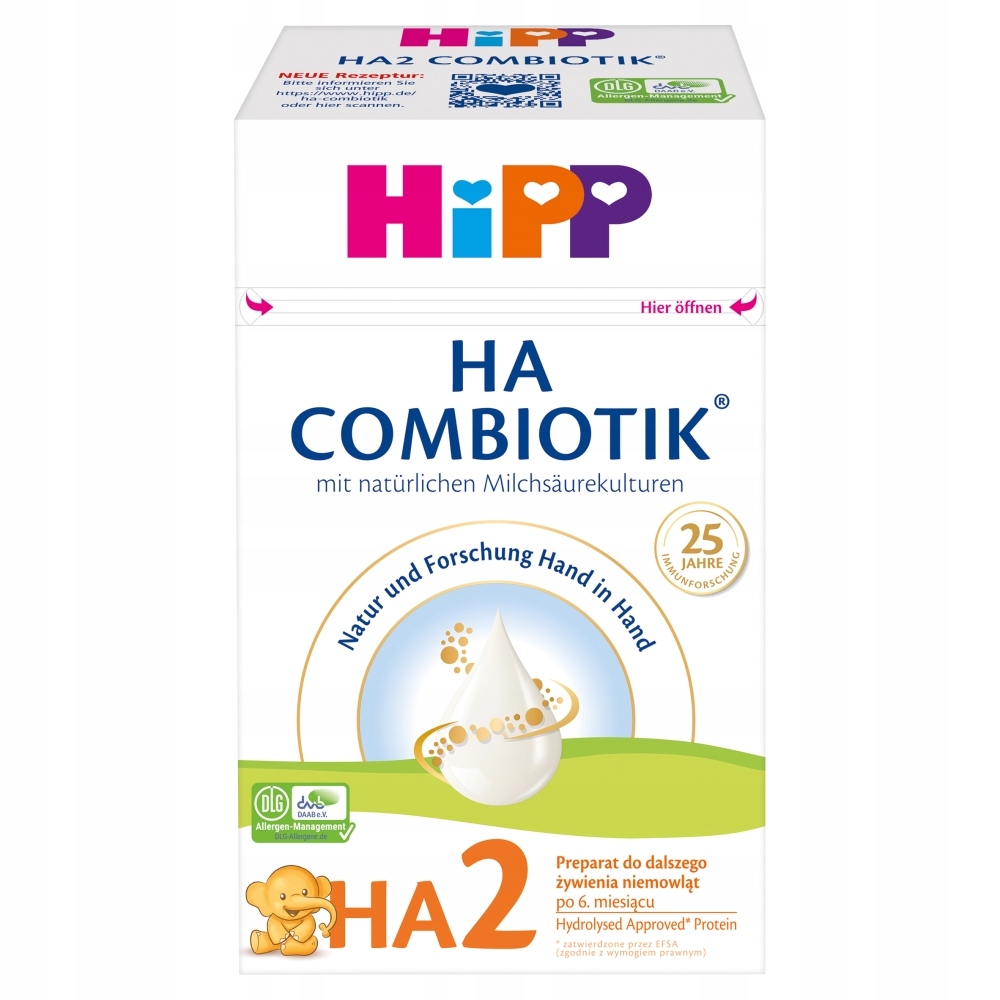 25 lat badań nad odpornością doprowadziło do stworzenia HiPP HA COMBIOTIK® - formuły, która jest specjalnie dostosowana do potrzeb żywieniowych niemowląt z wrażliwym układem odpornościowym. To, co czyni HiPP HA COMBIOTIK® tak wyjątkowym, to starannie zhydrolizowane białko, które jest znacznie lepiej tolerowane przez wrażliwy układ odpornościowy dziecka.