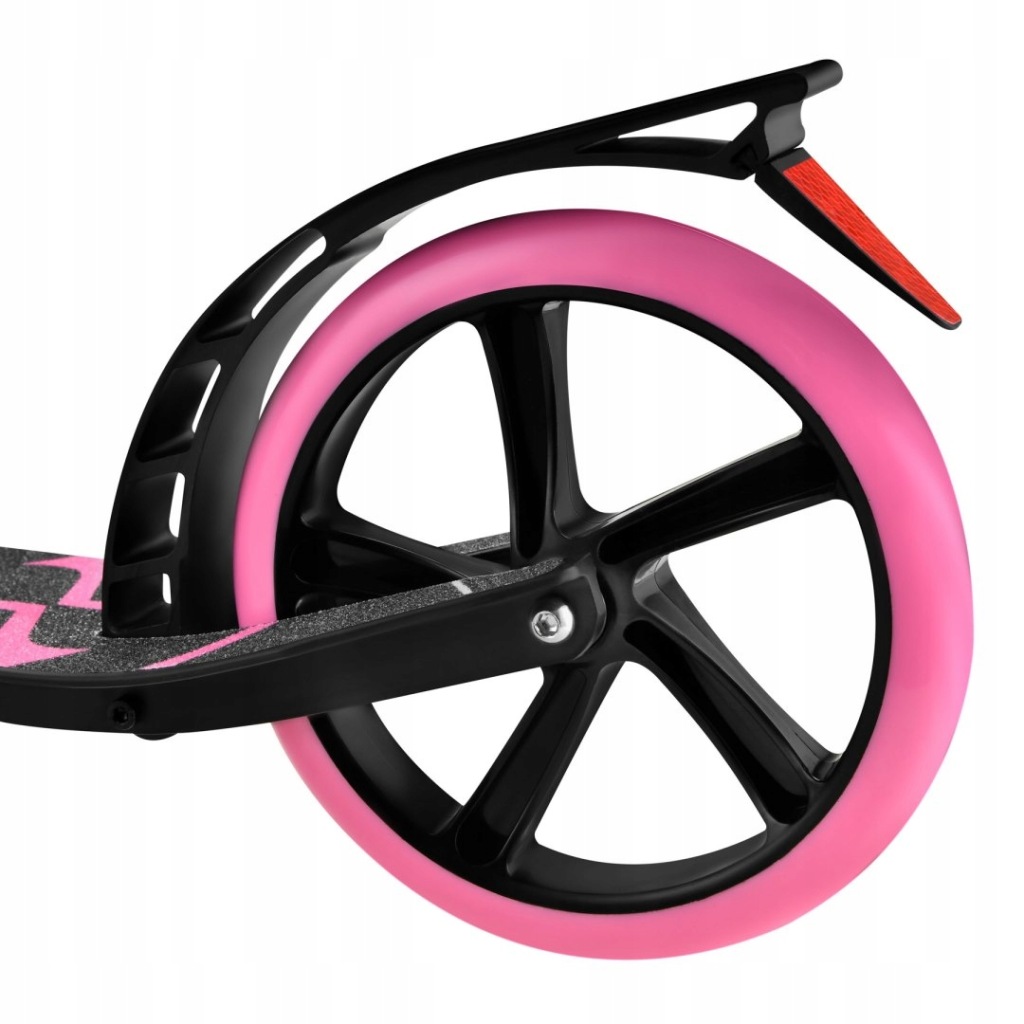Dzięki zastosowaniu dużych, poliuretanowych kółek o średnicy 200 mm oraz wysokiej klasy łożysk ABEC 7, hulajnoga zapewnia płynną jazdę nawet po nierównych nawierzchniach. Doskonale sprawdzi się zarówno na asfalcie, jak i wybrukowanych chodnikach, gwarantując komfort i minimalizując drgania.