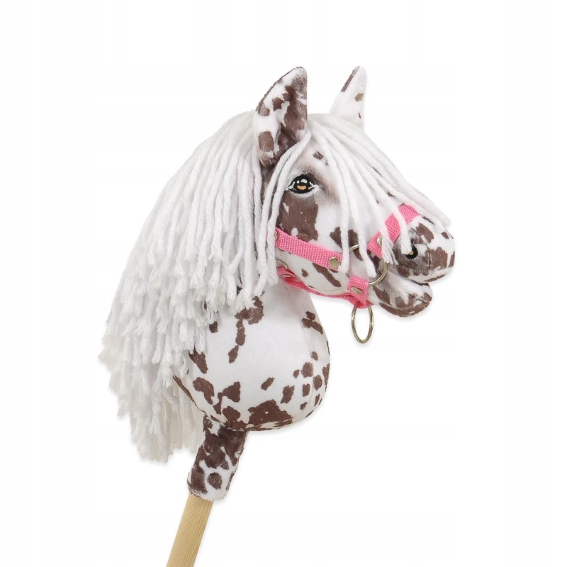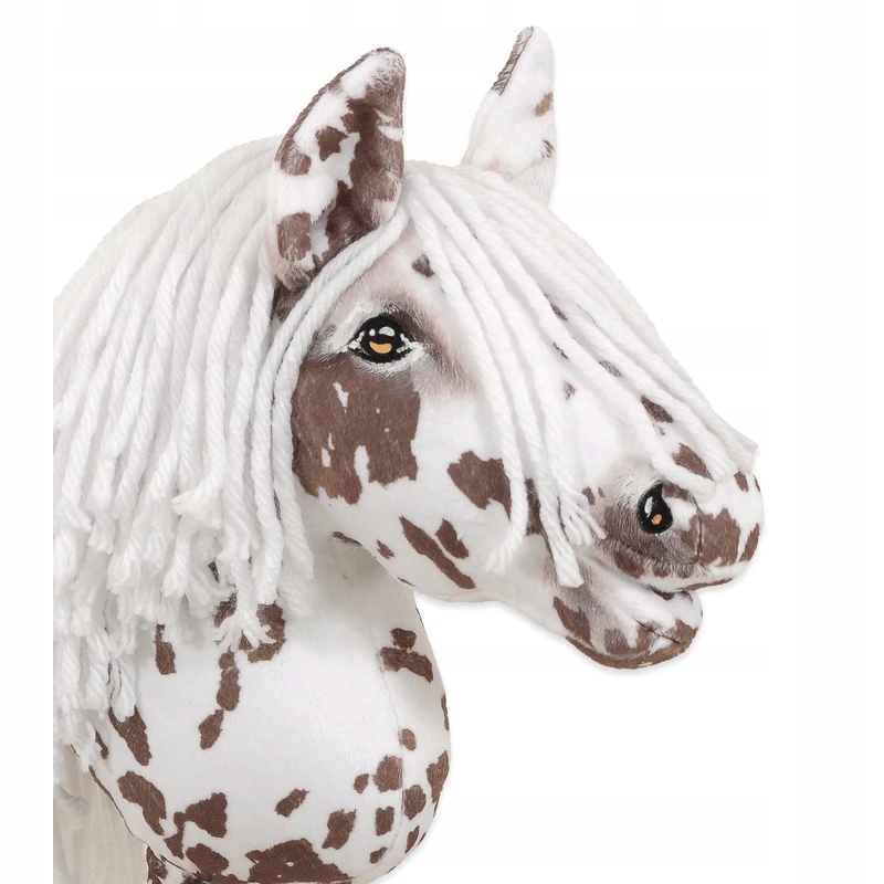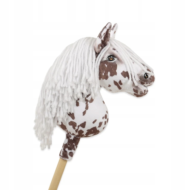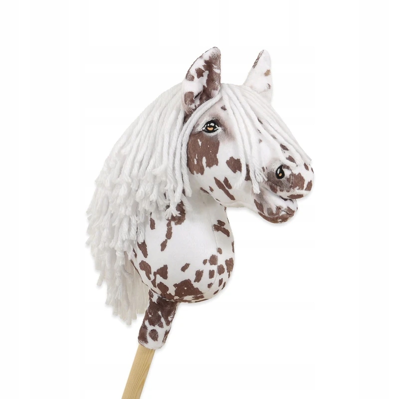 Super Hobby Horse – piękny realistyczny koń na kiju – biało-brązowy tarantowaty koń z białą grzywą