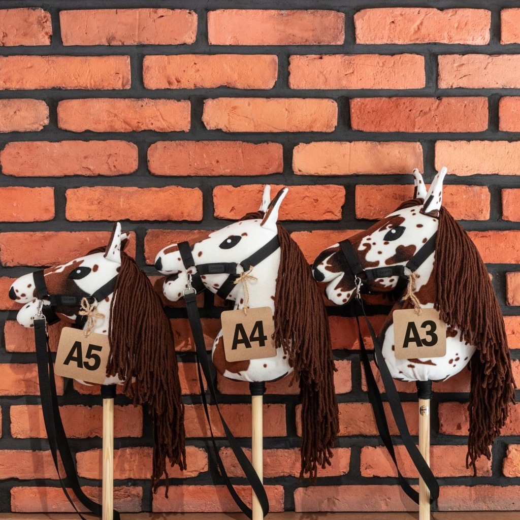 Koń hobby horse A5 z kantarem i wodzami w zestawie.