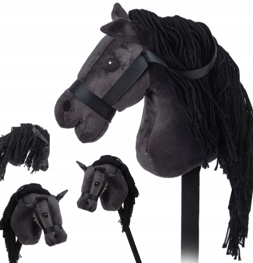 Duży koń hobby horse A3 z kantarem i wodzami w zestawie.