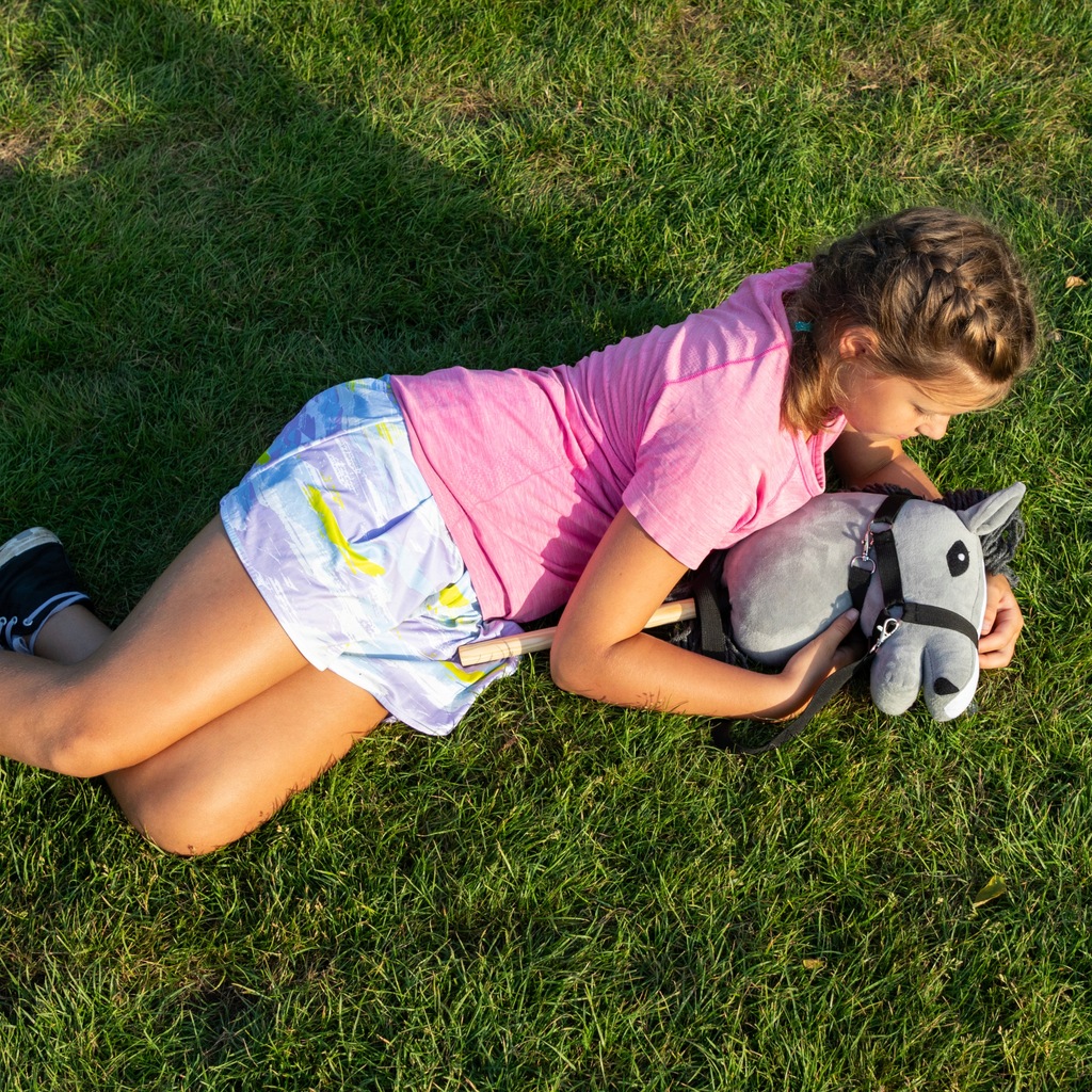 Nasz hobby horse ma idealnie dobraną długość kija. Konia wygodnie się prowadzi, a kijek nie zawadza podczas skoków przez przeszkody. Odpowiednia długość kija jest bardzo ważna – zbyt długi kij może utrudniać zabawę. Kij jest osadzony sztywno, nie rusza się na boki i nie obraca, dzięki czemu chwyt jest pewny i wygodny.