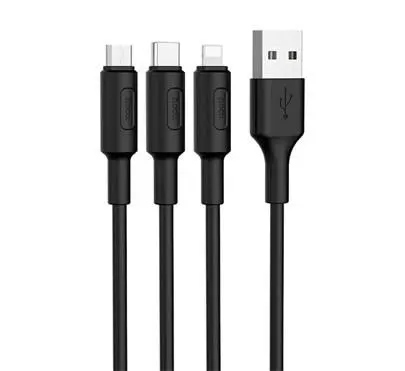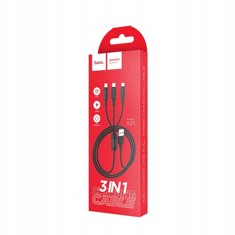 Kabel ładujący z trzema końcówkami - Soarer X25 do złącza Lightning, Micro-USB, Typ C. Wspiera funkcję szybkiego ładowania i zapewnia bezstratną transmisję danych.