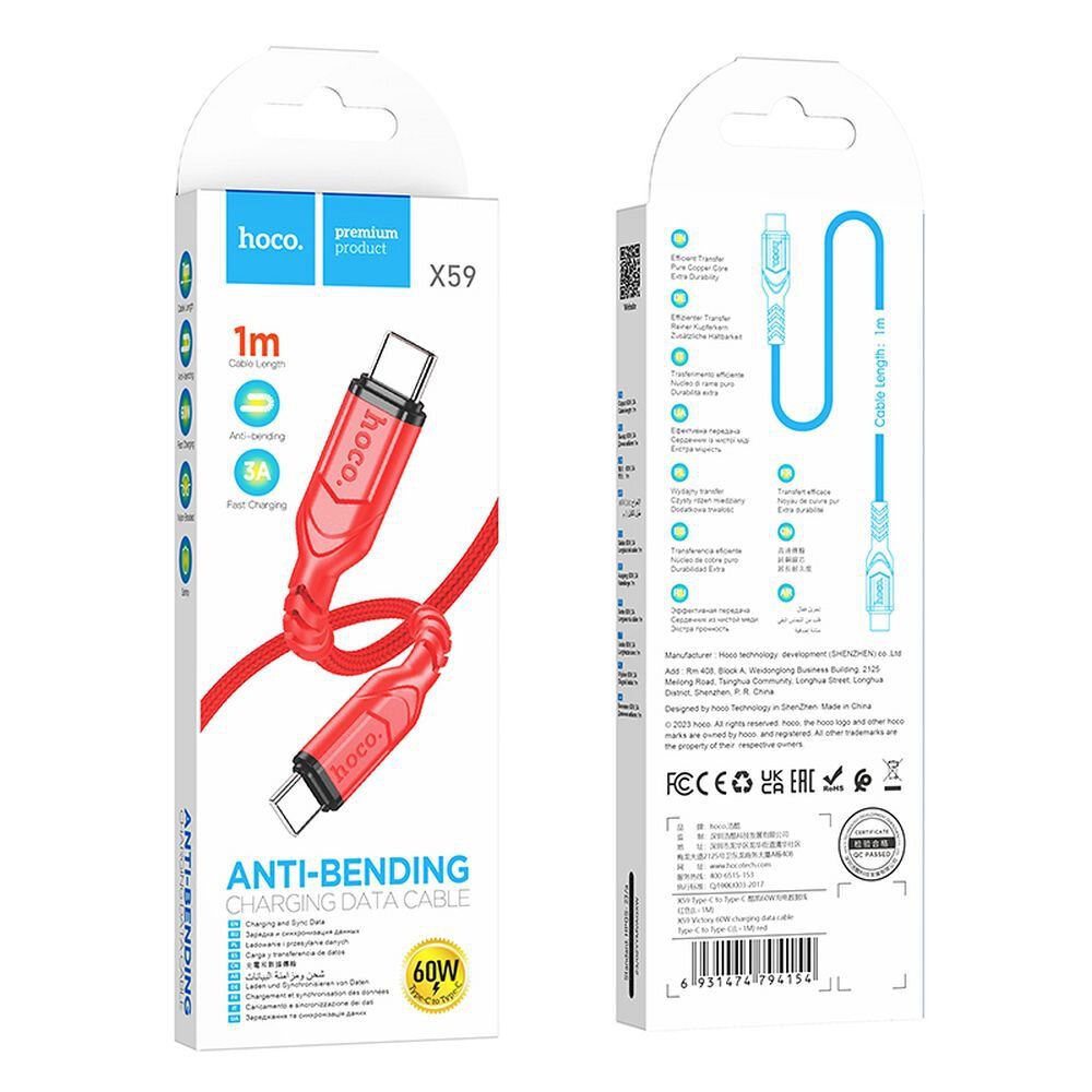 HOCO kabel Typ C do Typ C PD QC 3A 60W X59 1 m czerwony