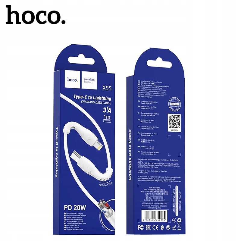 Kabel ładujący USB typ C-Lightning - HOCO X55. Wspiera szybkie ładowanie urządzeń Apple.
