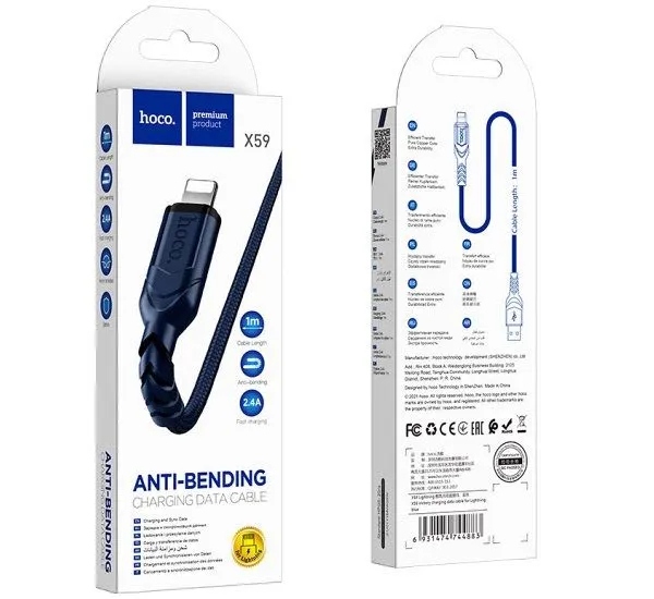 Kabel VICTORY X59 marki HOCO wspiera szybkie ładowanie oraz transfer danych. Odporny na zginanie, mocny nylonowy oplot, wzmocniona konstrukcja. Kompatybilny z urządzeniami Apple.