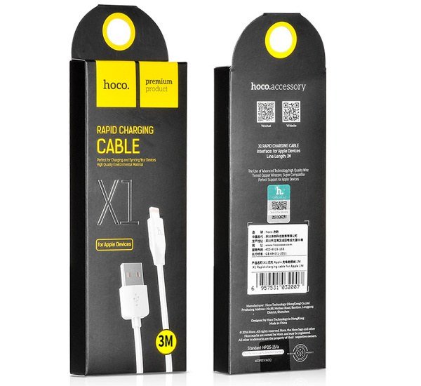 Nowoczesny kabel - HOCO X1 RAPID. Zapewnia pełną kompatybilność z urządzeniami firmy Apple. Wspiera ładowanie urządzeń.