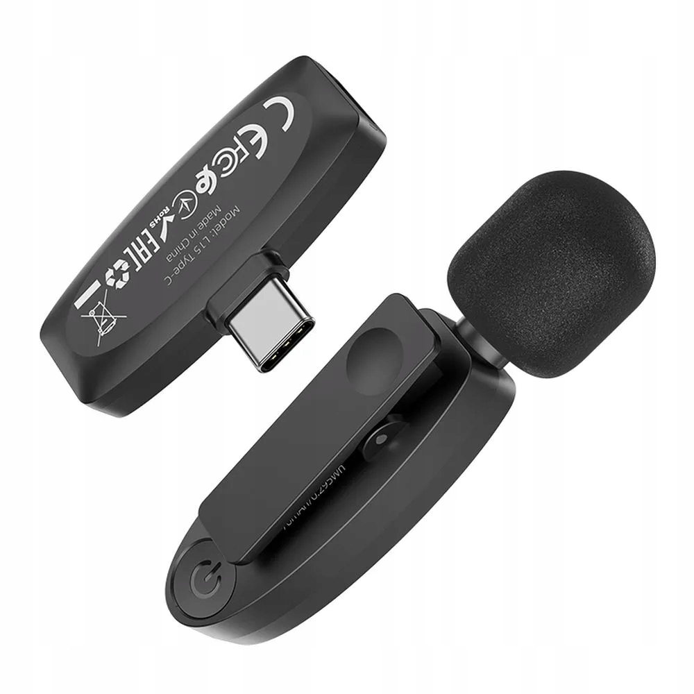 ✨ HOCO mikrofon krawatowy bezprzewodowy Typ C L15 czarny