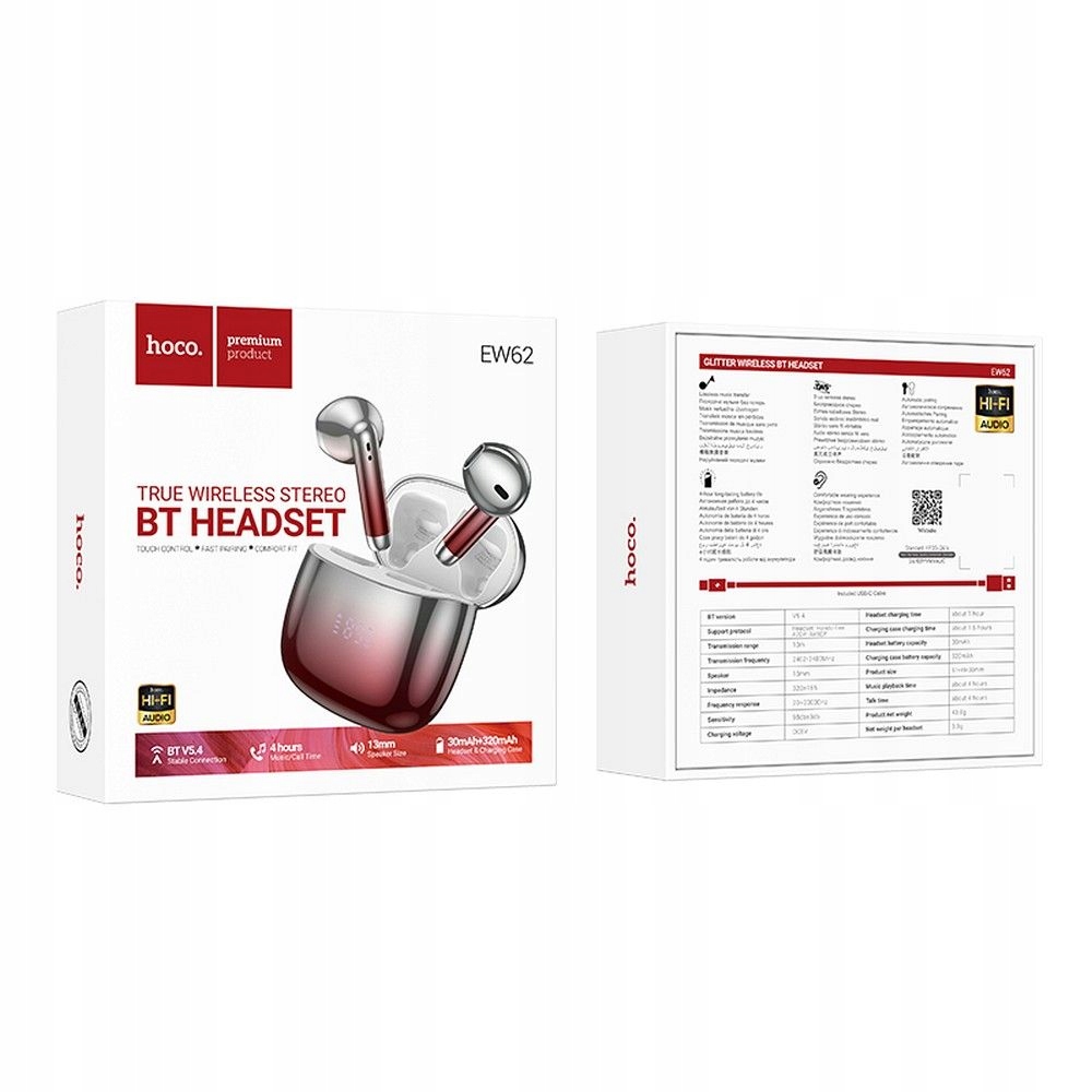HOCO słuchawki bezprzewodowe bluetooth TWS EW62 czerwone