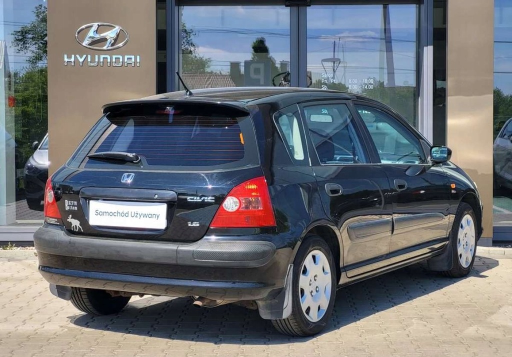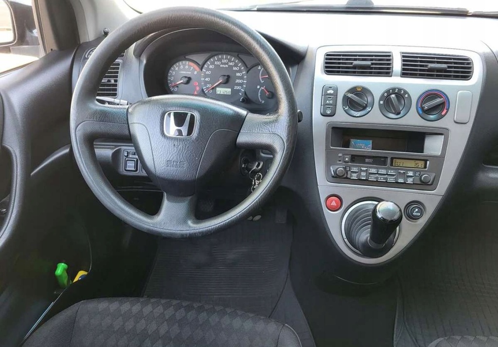 ### Bezpośredni kontakt do sprzedającego 601 614 122 ###Prezentowany samochód Honda Civic 1.6 benzyna 110KM. Auto z roku produkcji 2003.- dodatkowo komplet kół zimowych- przegląd do stycznia 2025- ubezpieczenie do stycznia 2025Auto wyposażone jest w:4/5 zagłówkiABSAirbag - 4 sztukiEl. podnoszenie szyb, przód ImmobilizerKlimatyzacjaLusterka boczne regulowane elektrycznieSkrzynia manualna, 5-biegowaTylne oparcie składane, dzieloneWspomaganie układu kierowniczegoZamek centralnyZderzaki i lusterka w kolorze nadwozia