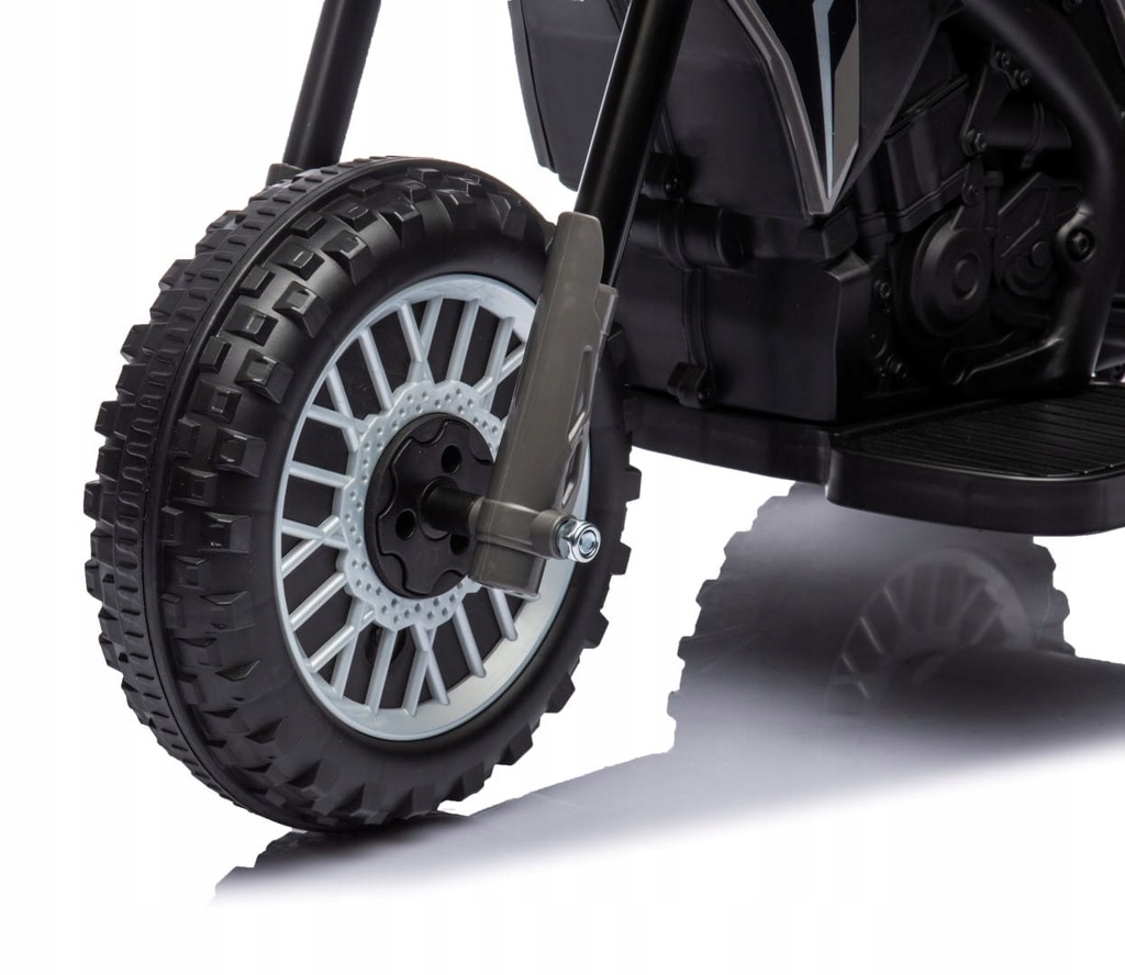 Motor jest zasilany akumulatorem o pojemności 4 Ah co umożliwia długie godziny zabawy przed każdym ładowaniem, dając dzieciom szansę na dłuższą przygodę na motocyklu